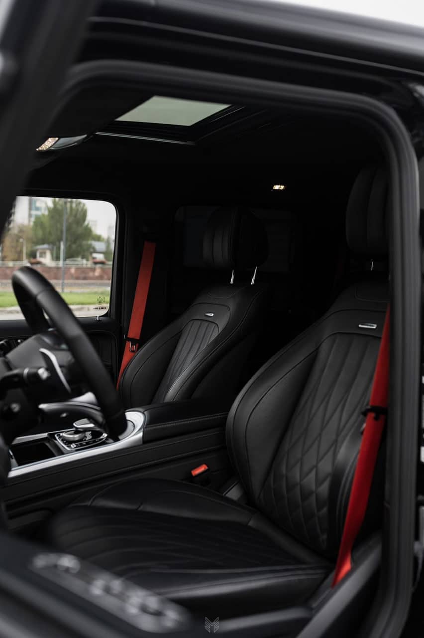 Салон Гелендваген отделан элитными материалами и оснащен по последнему слову техники. Автомобиль комплектуется инновационной мультимедийной системой, автоматическим климат-контролем, премиальной акустикой объемного звучания. Все сиденья оснащены индивидуальными электрорегулировками и системой подогрева, имеется система.